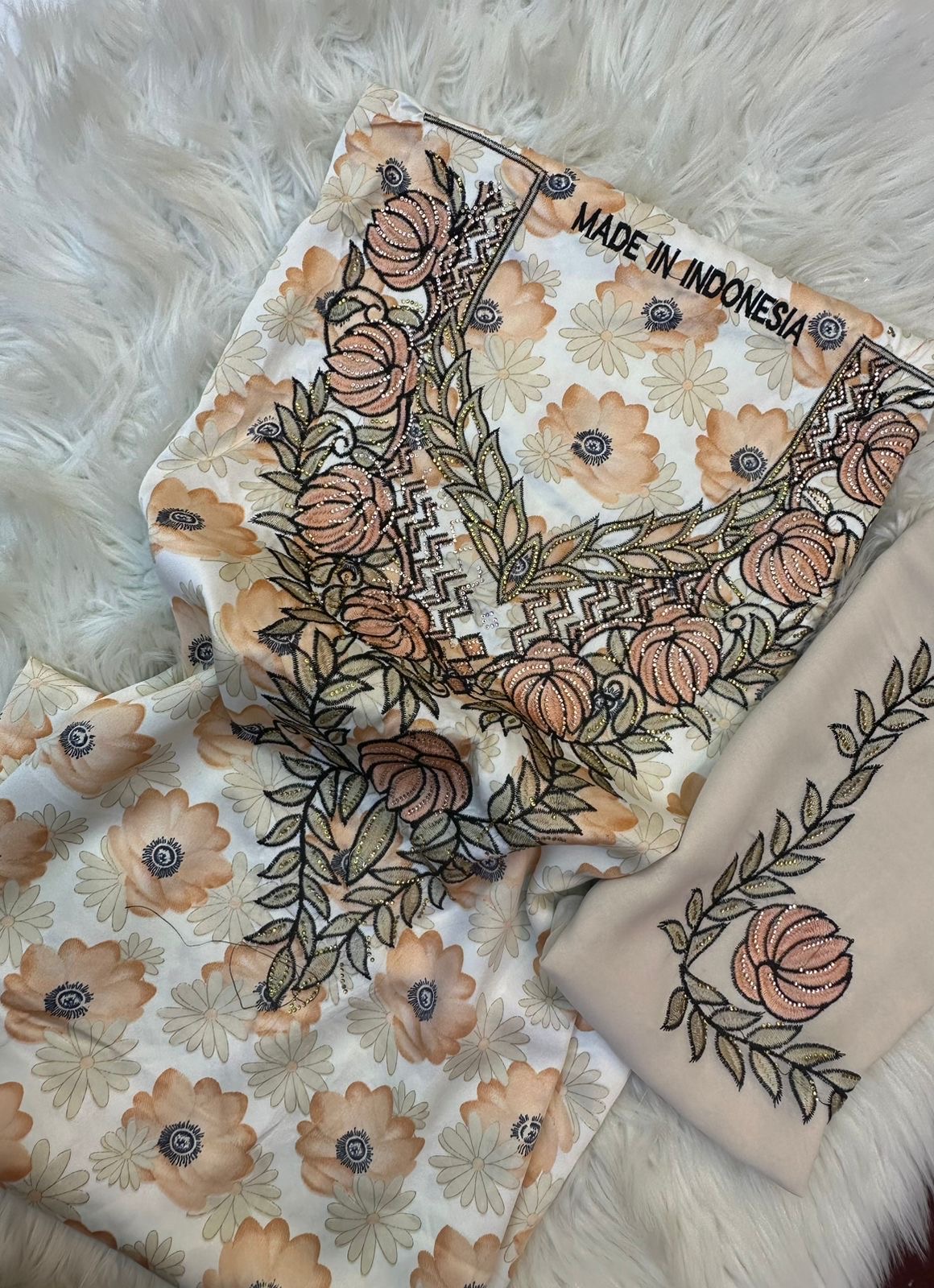 حرير إندونيسي أصلي يمتاز بملمسه البارد ونقوشه الزهرية الراقية، مجهز بتطريز كثيف 1