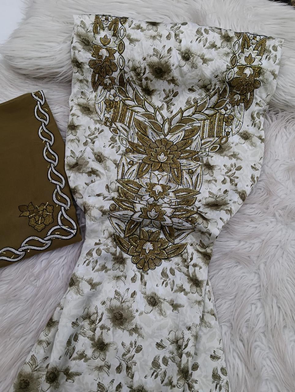 حرير إندونيسي أصلي يمتاز بملمسه البارد ونقوشه الزهرية الراقية، مجهز بتطريز كثيف 1
