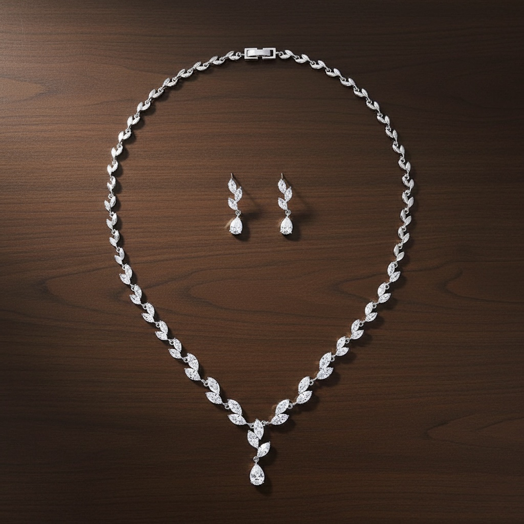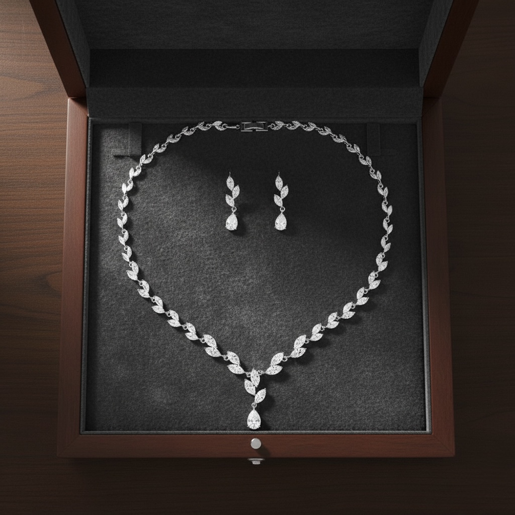 كن أول من يقيم “طقم مجوهرات نسائي راقي (عقد وأقراط) مرصع بأحجار الزركون اللامعة”