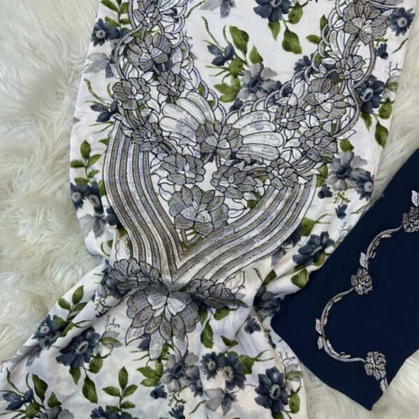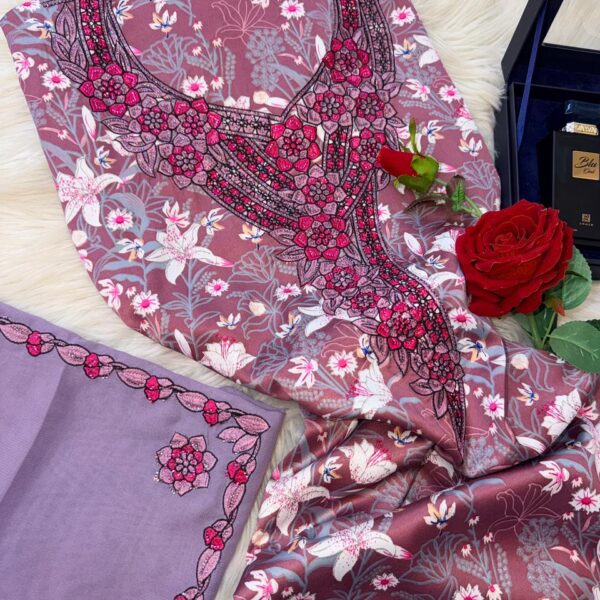 حرير إندونيسي أصلي يمتاز بملمسه البارد ونقوشه الزهرية الراقية، مجهز بتطريز كثيف 2
